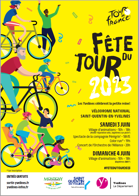 Pour célébrer la dernière étape du Tour de France au départ du Vélodrome National de Saint-Quentin-en-Yvelines le 23 juillet prochain, le Département des Yvelines et la ville de Montigny-le-Bretonneux organisent les 3 et 4 juin prochains la Fête du Tour !