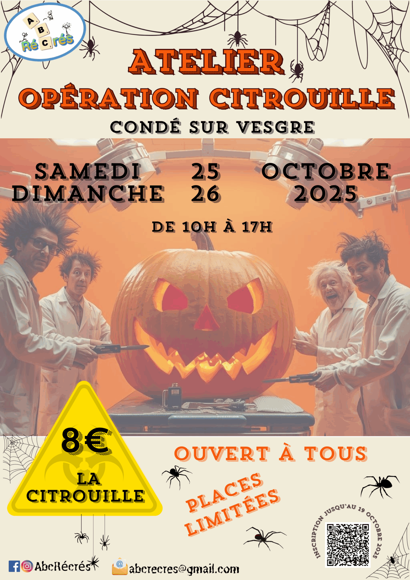 Cette année l'association ABC RéCrés vous propose un atelier "Opération citrouille". Venez découper, cisailler votre citrouille dans une ambiance chirurgicale. Inscrivez-vous vite via le lien ci-dessous avant que tous les scalpels soient utilisés. Lien pour inscription : https://docs.google.com/.../1FAIpQLSfaYcqK4vV.../viewform... Inscription avant le 19 Octobre 2025